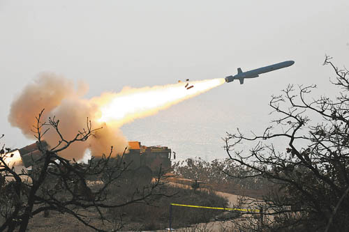 遼東海岸一個(gè)偏僻的山坳里,隨著指揮員“5、4、3、2、1、發(fā)射!”一連串指令的發(fā)出,某新型導(dǎo)彈噴射著烈焰撕破海空,撲向數(shù)百公里外的“敵艦”。