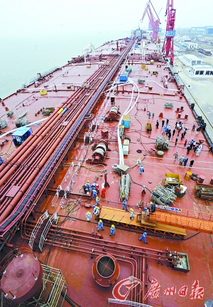 來自廣州中海油運公司的船長馮萬遠說,新埔洋號輪是目前我國自行設計設備最先進、性能可靠、自動化程度最高的超大型油輪!靶缕已蟆碧柍晒ㄔ煲矊⒊蔀閺V州乃至整個華南地區造船業發展的里程碑。