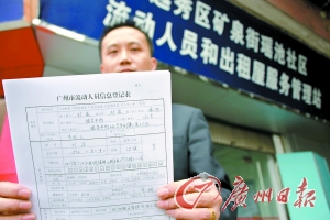 然而記者仔細(xì)看了看工作人員要求填寫的登記表,卻發(fā)現(xiàn)還是原先辦暫住證時(shí)所填的《廣州市流動(dòng)人員信息登記表》,至于居住證的申請(qǐng)表是何模樣,就連工作人員也稱沒(méi)能見上一眼。