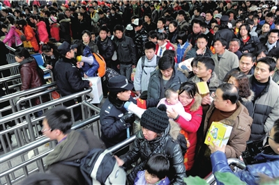 據(jù)介紹,從2月6日起,進(jìn)入春運(yùn)客流高峰期,西站開(kāi)行臨客列車(chē)34列,是進(jìn)入春運(yùn)以來(lái)開(kāi)行臨客列車(chē)最多的一天。同時(shí),西站單日上下車(chē)旅客將超過(guò)31萬(wàn)人,其中上車(chē)旅客將達(dá)到18萬(wàn)人,下車(chē)旅客達(dá)到13萬(wàn)人。