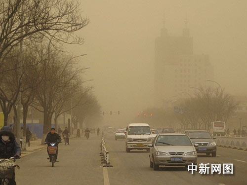 中新網廊坊3月20日電 (記者 宋敏濤)今晨,河北大部及京津地區出現明顯揚塵。有著“花園城市,溫馨之都”美譽的河北廊坊也難能幸免沙塵襲擊。今天上午,在廊坊街頭,受沙塵影響能見度不足千米。停了一晚的汽車上落滿一層黃色塵土,街上行人遮鼻掩口艱難前行。