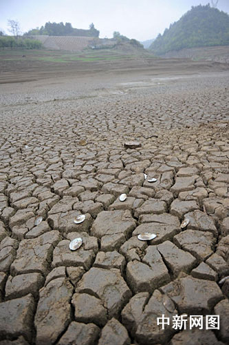 中新網貴陽3月24日電 題:貴州開陽縣干旱災區見聞:飲用水源庫底水族成“化石”