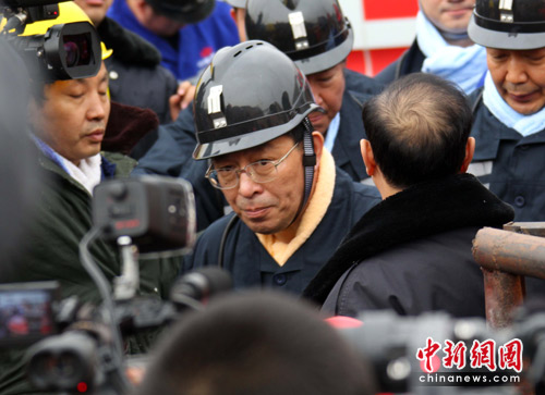 中新網河津3月31日電(張云)王家嶺礦透水事故搶險進入第四天,救援搶險仍在緊張進行。31日中午,國家安監總局局長駱林,安全監管總局副局長、國家煤礦安監局局長趙鐵錘,山西省長王君下井視察搶險進度。