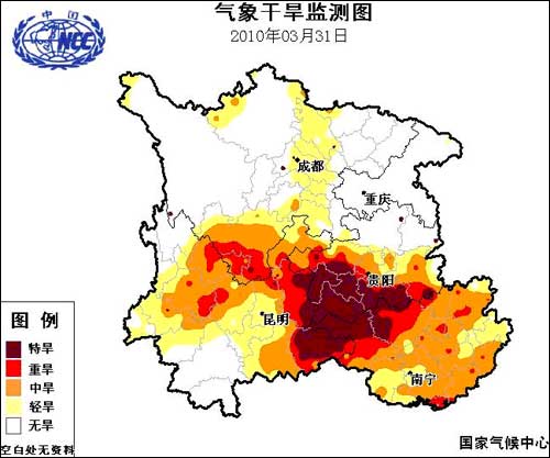 連續幾天的降雨滋潤了干渴的大地,廣西部分地區氣象干旱有所緩和。據3月31日監測顯示,云南中北部和東部、貴州西部和南部、四川南部、廣西北部和東南部有中度以上氣象干旱,其中云南中北部和東部、貴州西部和南部、四川南部、廣西西北部仍存在重度以上氣象干旱。與前一天相比,廣西東北部氣象干旱有所緩和。