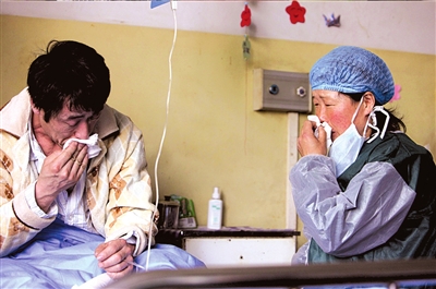 梁進軍是山西陽城人,今年35歲。上午9時許,他的哥哥、嫂子和未婚妻張粉瑜來病房看望他。一見到弟弟,哥哥和嫂子趕忙上前,抓住他的手。這時,站在一旁的張粉瑜抹著眼淚問:“你心里受罪了嗎?”梁進軍搖搖頭,靦腆地將未婚妻攬入懷中。張粉瑜告訴記者,她和梁進軍已經訂了親事,等未婚夫出院后,五一就要結婚了。聽到這一消息,旁邊的醫護人員紛紛鼓起掌來。
