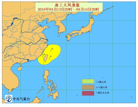 中新網(wǎng)4月13日電 中央氣象臺今日18時繼續(xù)發(fā)布海上大風預(yù)報:4月13日下午2時,黃海大部海域出現(xiàn)了6~7級西北風;東海大部海域、臺灣以東洋面出現(xiàn)了6~7級、陣風8~9級的東北風;臺灣海峽出現(xiàn)了7~8級東北風。臺灣海峽能見度不足10公里。其他海域天氣海況條件較好。