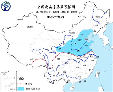 受冷空氣影響,預計,13日夜間到14日早晨,遼寧西部和南部、河北、京津地區、山西、陜西中北部、甘肅南部和東部、山東、河南、安徽北部、江蘇北部等地將會出現霜凍。