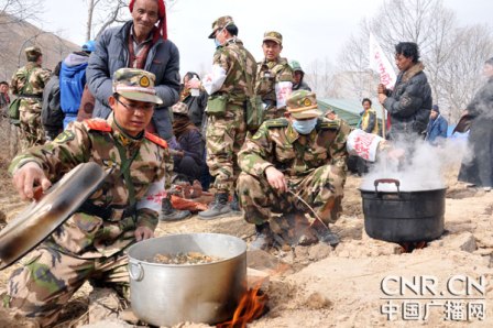4月16日,云南邊防醫療救護隊在青海玉樹災區支起了大鍋藥,當地的傷員喝了后一個勁地說好。