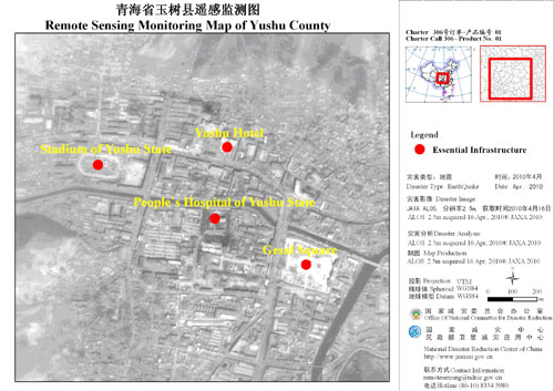 截至目前,通過國際減災憲章(Charter)機制,已獲取災前影像數據28景、災后4景,為青海玉樹地區房屋倒損、基礎設施損毀、次生災害等情況的評估工作提供了重要的數據基礎,發揮了重要的決策支持作用。與此同時,向中國氣象局進行了共享。
