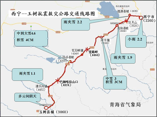 中新網(wǎng)4月20日電 據(jù)中國氣象局網(wǎng)站消息, 截至今晨7時,G214國道西寧至玉樹沿線大部出現(xiàn)了雨夾雪或降雪,其中瑪多縣城段為中到大雪,積雪4厘米。