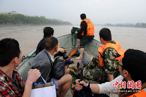 中新網桂林4月20日電 (周利朔 付興學 )經過廣西桂林市防汛指揮部人員以及當地消防官兵7個多小時的緊張營救,至20日下午3時30分,桂林一小島上十幾名被洪水圍困的群眾被及時轉移,無人傷亡。
