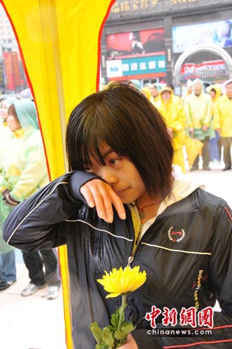 手持黃菊花的市民張女士表示,看到玉樹同胞遭受大災難,她的心情特別的痛苦,尤其是有很多孩子沒有了父母,沒有了家庭。愿失去家園的孩子能早日重新走進新的家園,希望玉樹的同胞重新站起來,重建美好家園。