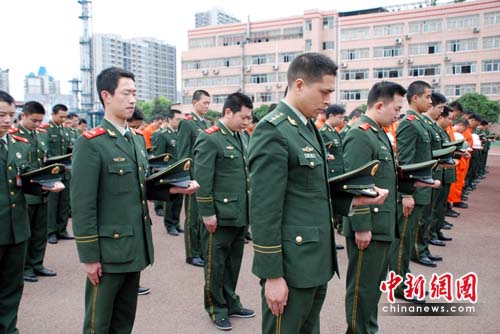中新網(wǎng)重慶4月21日電 (連肖)21日下午14時,重慶市消防總隊舉行降半旗儀式,200余名消防官兵集體為青海玉樹地震遇難同胞默哀3分鐘,向遇難者表示沉痛哀悼。