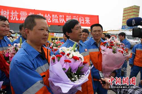 中新網(wǎng)成都4月26日電(記者劉忠俊)26日,國家電網(wǎng)四川省電力公司電力抗震救災(zāi)搶險隊安全從地震災(zāi)區(qū)玉樹返蓉。該支抗震救災(zāi)搶險隊為玉樹災(zāi)區(qū)送去了發(fā)電機、發(fā)電車以及電力搶險設(shè)備和救援物資,為玉樹災(zāi)區(qū)災(zāi)民安置區(qū)、學(xué)校復(fù)課提供了充足的電力保障。