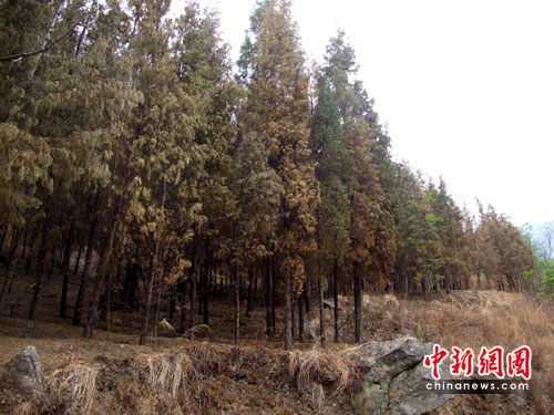 中新網昆明5月14日電( 鄭加升) 百年不遇的大旱,無情的肆虐著云南的大地。三季連旱的天氣,導致云南省東川區的樹木開始大面積枯萎甚至死亡。
