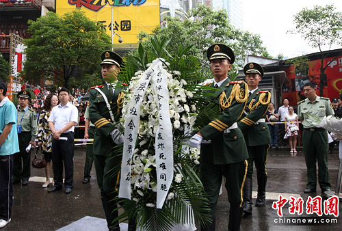 敬獻(xiàn)花籃,紀(jì)念“重慶大轟炸”遇難同胞。