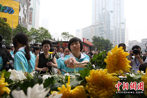 (組圖)山城市民獻(xiàn)花紀(jì)念“重慶大轟炸”遇難同胞