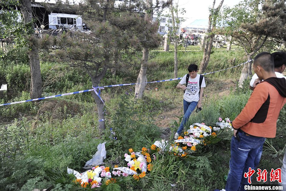 吉林火災遇難者家屬廠房外擺花圈悼念親人