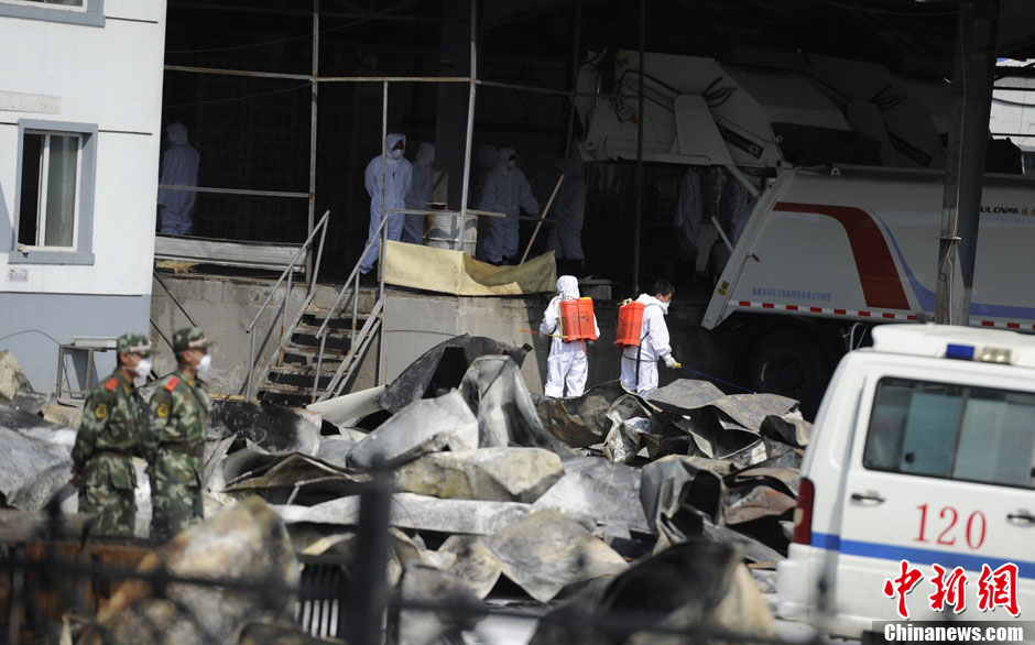 吉林火災現場禽類產品及污染物開始無害化處理工作