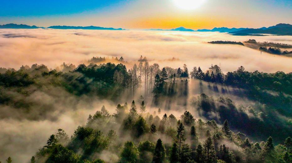 夏日,航拍位于貴州省畢節(jié)市七星關區(qū)的拱攏坪國有林場綠意盎然,景色怡人。拱攏坪國有林場總面積超過5萬畝,森林覆蓋率超95%,是烏江、赤水河等流域的重要生態(tài)屏障。