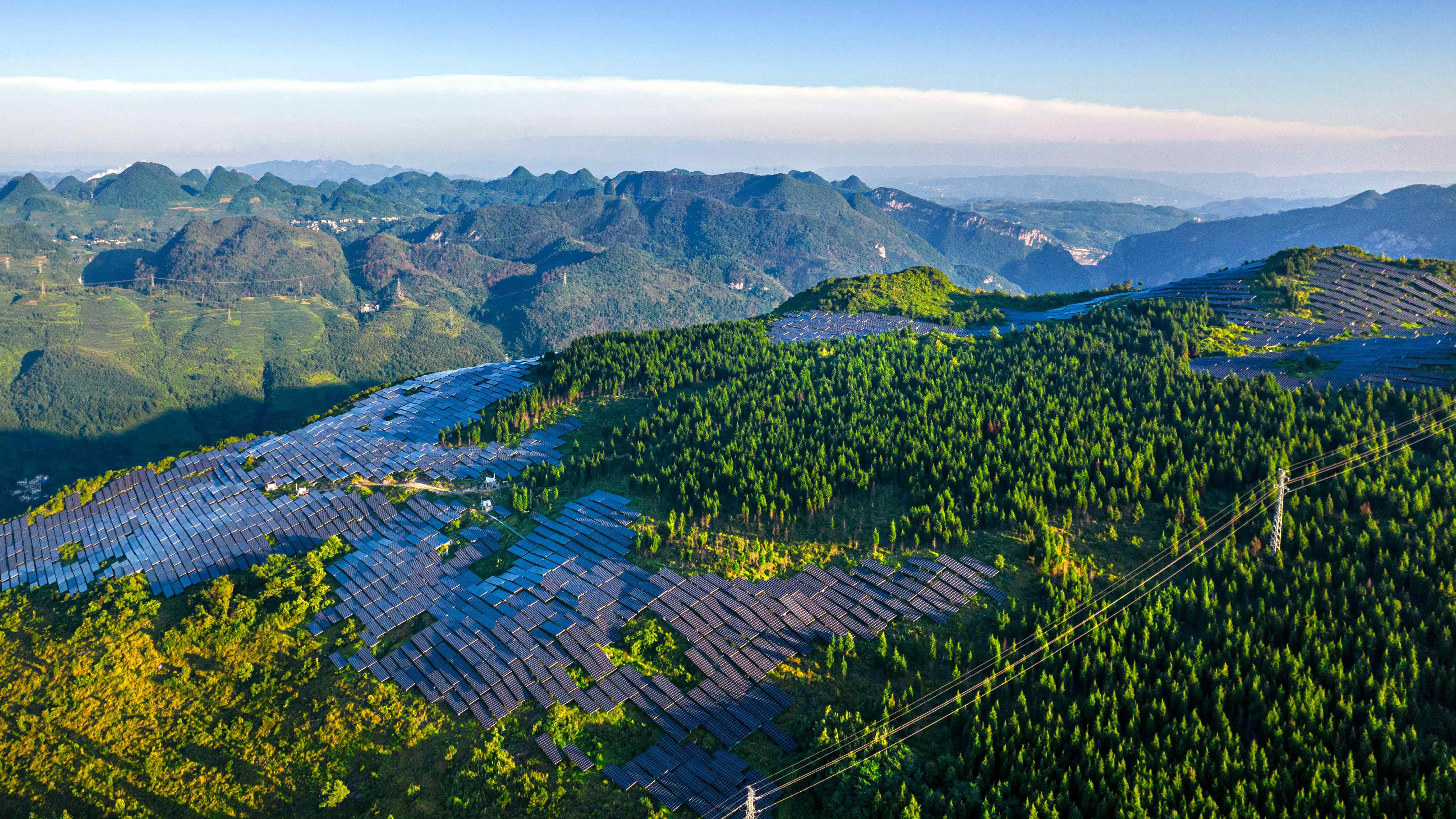 7月2日,在大方縣六龍鎮(zhèn),夕陽西下,一排排光伏板與遠處的風力發(fā)電機交相輝映,構成一幅新能源發(fā)電的“風光”圖。2023年以來,大方縣新能源項目已累計并網45萬千瓦,累計發(fā)電約4億千瓦時,節(jié)約標煤約12萬噸,減少CO2排放約33萬噸。為區(qū)域能源轉型和綠色發(fā)展注入強勁動力的同時,帶動地方實現(xiàn)經濟、生態(tài)雙豐收。