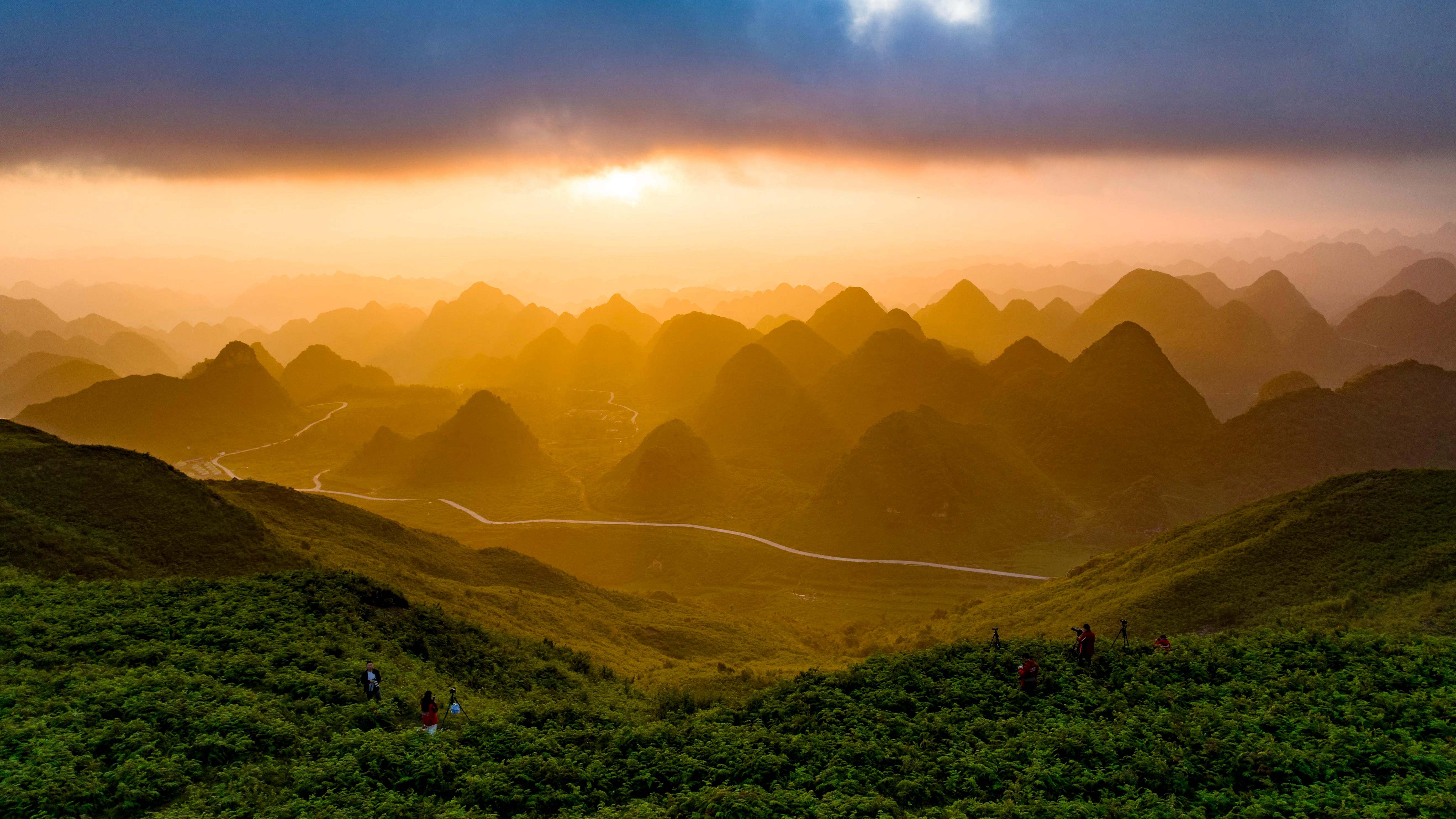 6月28日,連日陰雨過后,貴州省畢節(jié)市赫章縣阿西里西大草原景區(qū)與韭菜坪景區(qū)迎來晴好天氣,日出云海美景震撼登場,金色光芒灑在翻滾的云海之上,草原與山巒在云霧中若隱若現(xiàn),吸引眾多攝影愛好者和游客前往觀賞。
