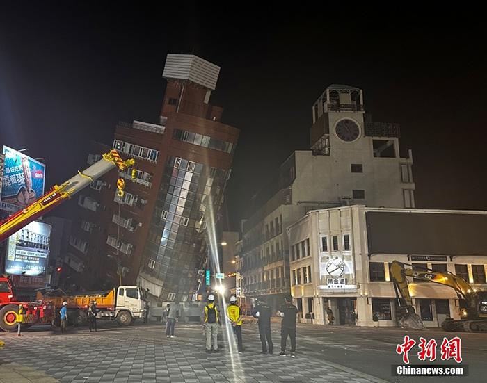 花蓮地震導(dǎo)致當(dāng)?shù)?棟大樓嚴(yán)重傾斜 特搜隊(duì)集結(jié)救援