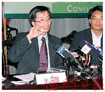 食品安全統(tǒng)籌小組技術小組成員譚偉文、陳惟蒨、湯家耀、伍秉賢、戴健業(yè)、何慧卿等23日下午3時許于民署大樓禮堂,公布近日衛(wèi)生局及民署化驗所收集的雞蛋樣本化驗結果。
