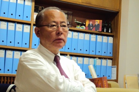 4月29日下午,記者走進日本參議院議員、民主黨國會對策委員會常務副委員長、民主黨外委會主任川上義博的辦公室,首先看見書架上擺放著中共總書記胡錦濤與他在人民大會堂握手的照片。