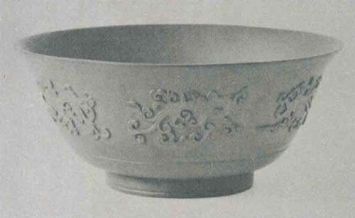 清代紫砂器偶有印模貼花的技巧。筆者曾在外國一間藝術館,見過一件仿西藏酒壺的清代初期紫砂器,像高身圓壺的造型;較特別的就是其紋飾,包括有印模貼花的八仙與飛鳳,貼花技巧和陳覲侯這個貼花碗大同小異,甚富裝飾性。