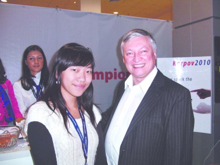 在比賽期間,元凌和前世界冠軍卡爾波夫進行了愉快的交談,卡爾波夫聽說了元凌在加拿大創辦的“Chess in the Library”項目非常高興﹐并和元凌合了照。