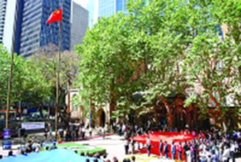 一日是新中國成立六十周年國慶之日,上午十時正,在悉尼市政府的廣場,一早匯集了近二百名的中國留學(xué)生和華僑。留學(xué)生們舉著特大的中國國旗和澳洲國旗,等待一個偉大的時刻來臨。