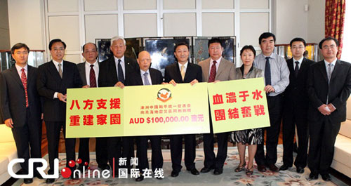 中國青海玉樹地震不僅牽動著全中國人民的心,也牽動了海外華僑華人的心。澳洲中國和平統(tǒng)一促進(jìn)會在第一時間倡導(dǎo)澳大利亞華僑華人為災(zāi)區(qū)人民捐款。目前,該促進(jìn)會已為災(zāi)區(qū)人民籌到10萬澳元的善款,并已通過中國駐悉尼總領(lǐng)館轉(zhuǎn)交給玉樹災(zāi)民。