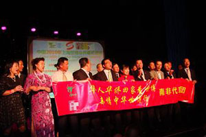 晚會行將結束時,房利總領事登臺宣布:“華僑華人回家看世博、親情中華世博行”南非代表團現在起程!