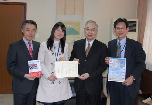 此前,第五屆中國人日語征文大賽在青島大學隆重舉行。日本駐青島總領事館總領事齋藤法雄代表日本駐華大使館為青島大學日語系三年級學生郭文娟頒發了日本大使獎。200多名獲獎者代表和青島各高等院校的師生代表等參加了頒獎典禮。會上,齋藤法雄還宣讀了宮本雄二大使的賀詞。