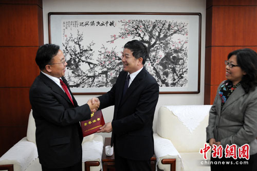 中新網北京3月31日電(記者 張冬冬)中國國務院僑辦副主任任啟亮今日在此間向五位第二屆華僑華人專業人士“杰出創業獎”獲得者代表授予獎章并頒發證書,以褒揚其對中國經濟建設、科技進步和建設創新型國家所做的貢獻。