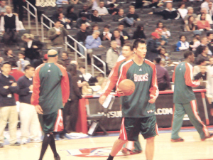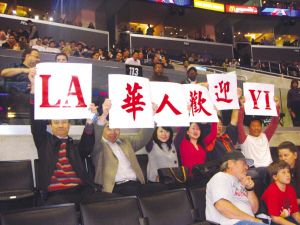 這是易建聯第一次重返洛杉磯比賽。眾多華裔球迷到場為易建聯吶喊助威,有的還打出“LA 華人歡迎易”的橫幅。
