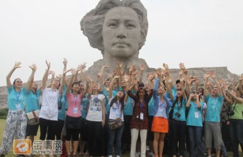 12日下午,54名來自世界各地的第九屆漢語橋世界大學(xué)生中文比賽的選手來到長沙著名的景點(diǎn)橘子洲,為第九屆漢語橋比賽拍攝宣傳片。