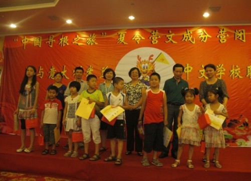中新網8月17日電 據文成縣僑辦消息,8月13日下午,“中國尋根之旅”夏令營溫州營文成分營閉營儀式暨與意大利米蘭中文學校聯誼活動在文成國際大酒店隆重舉行。溫州市僑辦副主任許捷以及有關部門負責人出席了會議。
