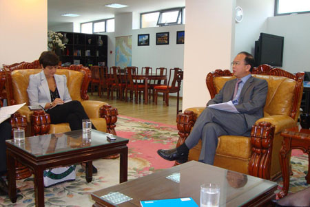 中新網9月28日電 據意大利歐聯通訊社報道,日前,中國駐意大利使館丁偉大使接受意大利當地媒體《信使報》記者博齊專訪,向意大利記者介紹了意大利中國文化年的籌備情況,以及文化年活動的相關內容。并應詢記者的請求,就中國經濟發展形勢、人權現狀以及中美關系做了介紹。