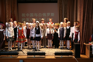 同學(xué)們質(zhì)樸而投入的表演深深打動(dòng)了每一位觀眾。大使夫人走上舞臺(tái),衷心感謝孩子們的精彩表演,特別感謝校方準(zhǔn)備的慶祝節(jié)目。她表示,看到白俄羅斯越來越多的孩子喜歡中國、學(xué)習(xí)漢語感到非常高興。中國使館愿與白俄羅斯朋友們一起,幫助更多的白俄羅斯青年人學(xué)習(xí)漢語,了解中國文化,幫助他們成為中白兩國人民交流的橋梁,為中白友誼的鞏固和不斷發(fā)展做出貢獻(xiàn)。