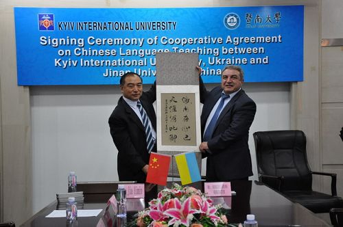 受校長胡軍的委托,暨南大學(xué)副校長賈益民于9月29日下午代表學(xué)校與烏克蘭基輔國際大學(xué)校長哈恰圖良簽署了兩校漢語教學(xué)合作協(xié)議書。在簽字儀式上,賈益民向來賓介紹了暨大的辦學(xué)情況,并講解了該校在辦學(xué)過程中形成的一整套,從教學(xué)、科研、教材編寫到海外教育項(xiàng)目開發(fā)的對外漢語教學(xué)辦學(xué)體系,暨南大學(xué)很樂意以優(yōu)質(zhì)的教學(xué)資源為有需要的國家提供漢語教學(xué)支持。哈恰圖良對暨大的熱情接待表示感謝,他盛贊中國是一個具有悠久歷史和文化傳統(tǒng)的偉大國家,漢語熱在世界范圍內(nèi)的興起就是最好的佐證。目前烏克蘭對漢語的需求很旺盛,學(xué)習(xí)漢語的人也越來越多,希望暨南大學(xué)在教學(xué)、師資等方面給予支持,全力推動烏克蘭的漢語教學(xué)工作。雙方簽署正式協(xié)議后將在建立漢語教學(xué)點(diǎn)、聯(lián)合培養(yǎng)研究生、互相協(xié)助招生等方面開展實(shí)質(zhì)性合作。