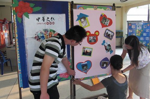 在短暫的休整過后,各教學點的大樂園教師分別召開會議,研究安排本次“中華文化大樂園”活動所面臨的問題和解決辦法。針對此次大樂園生源較少的特殊情況,校方采取了加大宣傳力度、印發大樂園宣傳冊、給周邊地區的學校和社團分發邀請函等措施,以確保大樂園活動的順利開展。大樂園教師還精心布置了教師風采、書法、國畫、剪紙作品展板,希望能夠激發學生和家長們對學習中華傳統文化的興趣。