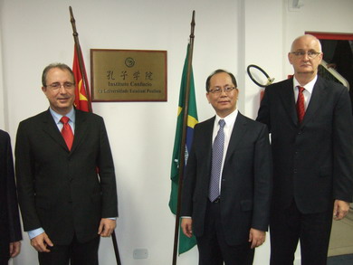 圣保羅州立大學校長代表、湖北大學校長代表、孔子學院院長、圣保羅州議員等先后致辭,贊揚在中巴雙方的努力下,孔子學院一年來取得的成績。