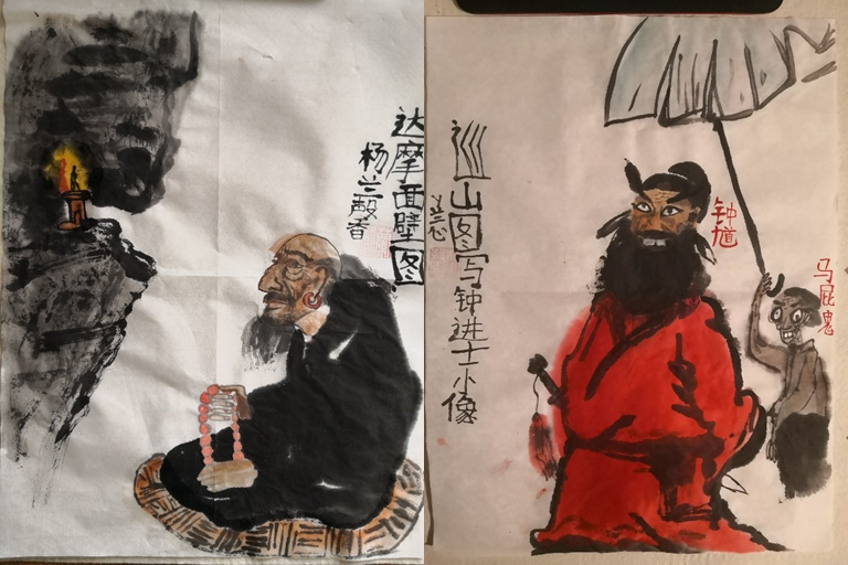 達摩面壁圖是由于達摩在中國南方傳教,未能在中國華南地區留下好印象,后來他幾經流浪,終于到達了少林寺。在被拒絕進入及在短時間內被驅逐后,他住在少林寺附近的一個山洞里,在那里他“面對墻壁九年,一直不說話”。最終他在石頭上印上了自己的倒影,并領悟了佛教的真諦,創建了禪宗。