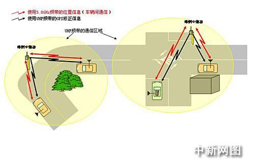 使用5.8GHz頻帶的DSRC車輛間通信功能交換位置信息。另一方面,今后,發送來自路側中繼器的GPS修正信息可以使用能被應用于ITS的UHF頻帶。