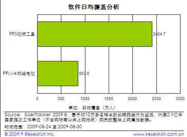 艾瑞最近調整了互聯網數據的發布頻率,由原先的月度改為一周,更及時精準反應企業動態。其中PPS網絡電視電視,在“軟件日均覆蓋分析”的指標中,依然延續一直以來的高增態勢,日均覆蓋仍保持在2500萬上下。僅軟件日均覆蓋一項數據就領先排名第二的同業者1600萬人,是后者的3倍之多(見圖一)。