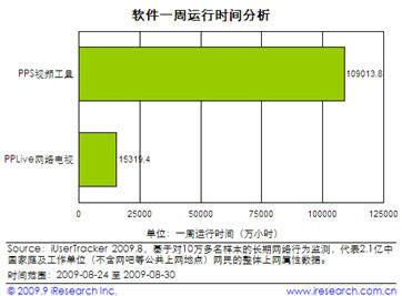 除了用戶覆蓋量,廣告主關心的莫過于網站的用戶黏性及用戶活躍度了!反應這些情況的一個重要指標就是軟件運行時間。以艾瑞的“軟件一周運行時間分析”指標來看,PPS網絡電視達到109013.8萬小時,行業排名第二的軟件運行時間僅為15319.4萬小時,此項數據PPS領先第二名更是達到了7倍之巨。一方面,軟件運行時長反映出用戶在其平臺上獲取的內容更多;另一方面也折射出PPS客戶端豐富的內容與流暢清晰的視聽體驗讓其海量的終端用戶“欲罷不能”。