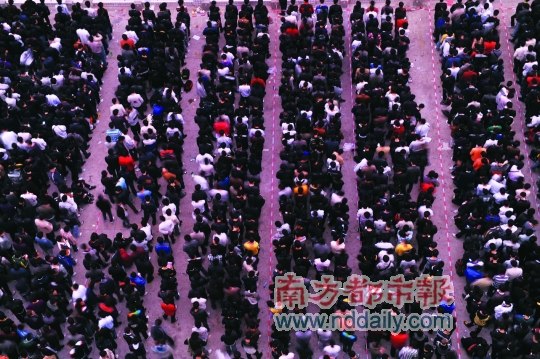 誰說今年企業(yè)招工難?過去一個(gè)多月,龍華富士康門口日日數(shù)千人求職,密度可比春運(yùn)火車站,進(jìn)人群易出人群難,站著睡覺不會(huì)倒,上個(gè)廁所得憋著。昨日凌晨5時(shí)左右,由于保安未上班無人看管,求職者更是擠倒欄桿,人仰馬翻,互相踩踏,幸無人員傷亡。