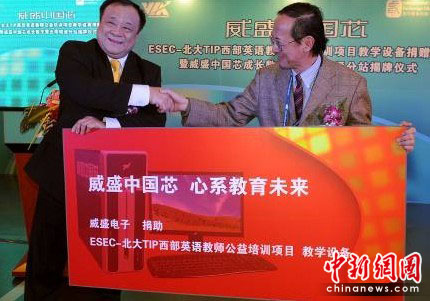 在捐贈(zèng)儀式上,威盛宣布向北京大學(xué)繼續(xù)教育學(xué)院、文理應(yīng)用學(xué)院ESEC教育機(jī)構(gòu)TIP項(xiàng)目捐贈(zèng)一批威盛Nano凌瓏處理器平臺(tái)電腦教學(xué)設(shè)備,這是威盛從2006年開始對(duì)該西部英語教師公益培訓(xùn)項(xiàng)目的第三期捐贈(zèng)。與此同時(shí),威盛中國芯成長數(shù)字營云南分站也正式揭牌,從而將威盛中國芯成長數(shù)字營的分站數(shù)量增加到21個(gè),基本覆蓋整個(gè)西部地區(qū)。